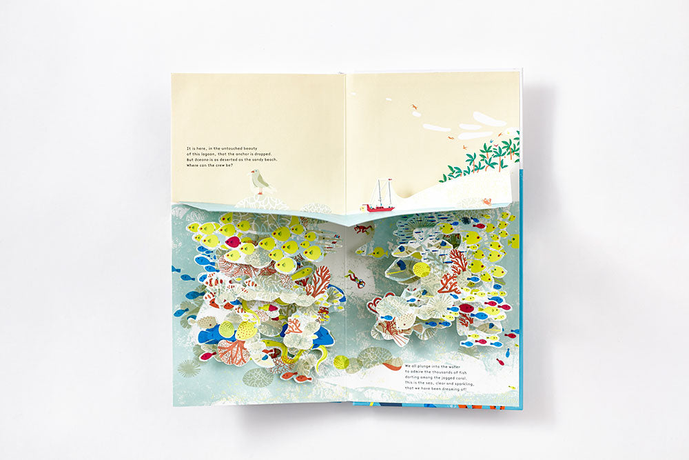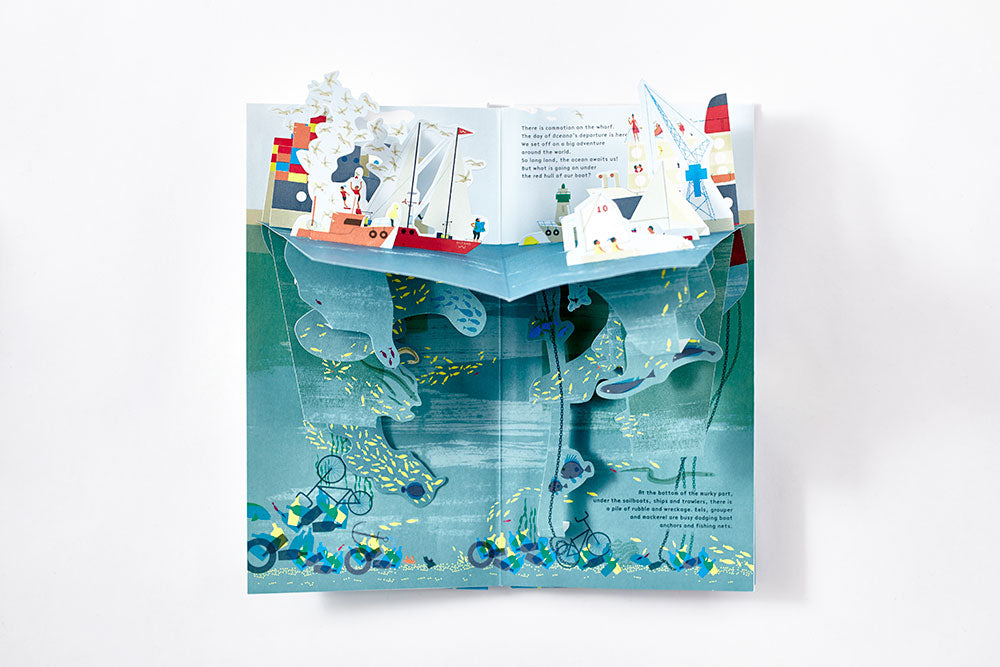 Climb aboard the sailboat Oceano and get ready to depart on an expedition around the world! The scenery changes as we sail from busy port to icy Arctic, over stormy seas, and toward an idyllic sunset. This book’s gorgeous palette and lyrical prose make an appealing package, though it’s what lies under the ocean that will surprise and thrill the most.