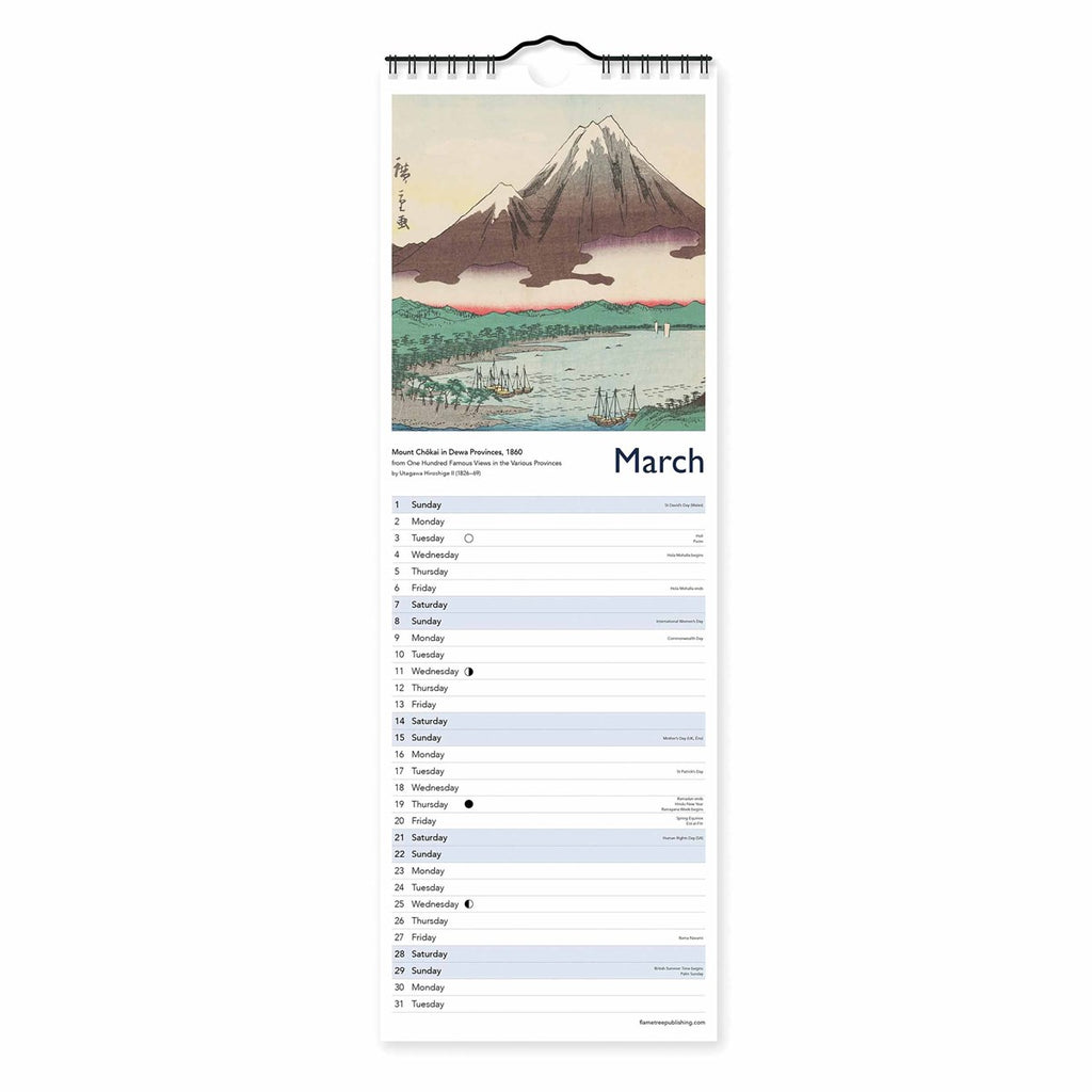 With a wide selection of views of Mount Fuji and everyday life in Japan, a fine new slim art calendar from Flame Tree.