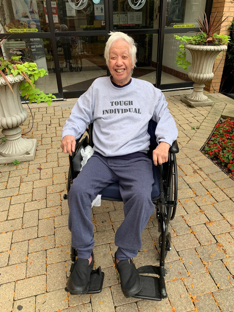 "In March of 2020 at the onset of Covid-19, my father Ruyell Ho was hit by a car walking across the street from his apartment. He sustained numerous injuries, including fractured hips and a traumatic head injury for which he required numerous surgeries. Having already survived caner years before, my dad successfully made it through multiple procedures, prompting his brain surgeon to exclaim excitedly that he was a tough individual. While my dad was in recovery, I shared the doctor's comment with him, and he was amused to no end. He repeated it over and over, clearly proud of the moniker. Due to pandemic restrictions, I was unable to see my dad for over a year except through a glass window. In lieu of direct contact, I often sent him care packages and gifts through the mail. A few weeks after the doctor paid my dad this compliment, I had a sweatshirt made bearing the text and sent it to my dad."