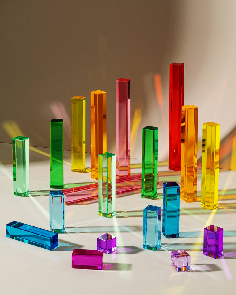 Millie Blocks come in a spectrum of colors that allow light to pass through, adding an enchanting glow to every creation. Perfect for building, stacking, or experimenting with light and shadow play. Designed for imaginative builders aged 3+ , Millie Blocks encourage freeform play—whether it's constructing towers, creating patterns, or exploring shapes and colors. Made with non-toxic, durable materials that are safe for little ones.