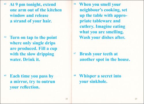 'A Daily Act' is a project by Atelier HOKO that highlights art in the everyday and how seemingly ordinary actions could be creative responses within public realms. It seeks to spark curiousity about what is often overlooked in our daily frenzy by encouraging passersby to explore everyday actions, surrounding objects and daily routines through suggested activities. Part documentation and “workbook”, this publication invites readers to attempt some of the instructions and respond to questions asked in the process of negotiating this project. The instructions on the jacket are randomised and there is a flyer enclosed.