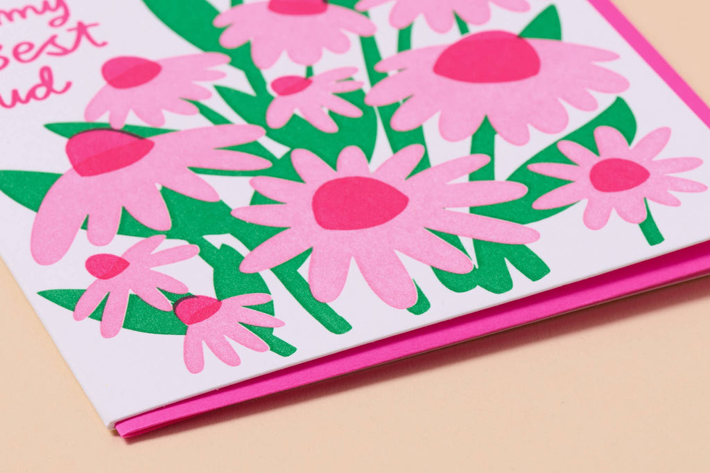 Best Bud Flowers Birthday Letterpress Greeting Card