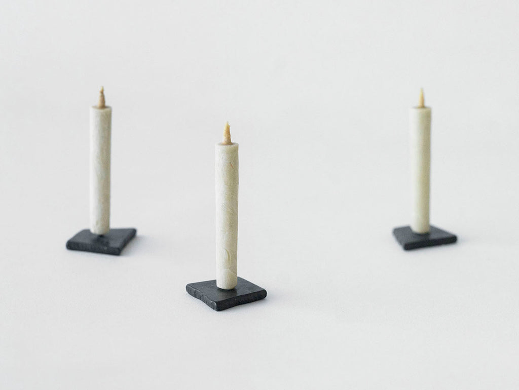 These Japanese candle wicks are hollow - made from Washi paper, rush weeds and silk fibres. This technique creates a larger, yet softer, flame than traditional western-made candles. Almost feather-like in its gentleness, the flame is the candle for these Japanese craftsmen. The flame creates the ambience - and an emotion that is not possible with electric light. There is an exquisite balance in the form of the candle, the shape of the flame and the way it flickers and burns. Use them for quiet moments of reflection or to add a pop of interest to any room..