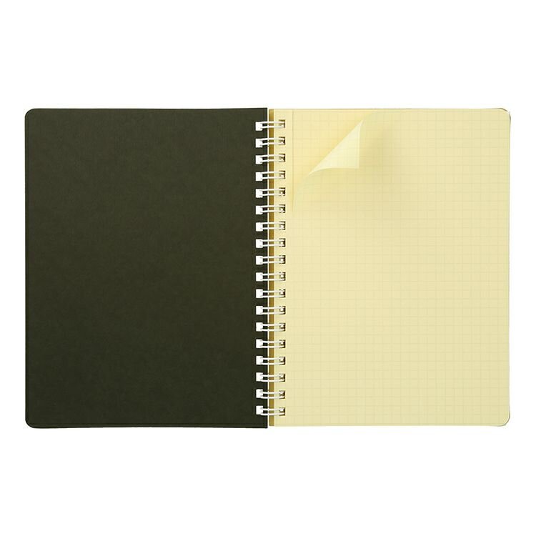 Thick cover stock, high-quality 5mm grid pages in signature cream shade, 5 clear pockets at back.