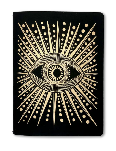 lined note pages in the backcover is printed with our classic Seeing Eye design in gold ink on black linen card stockplanner is center sewn with a durable thread