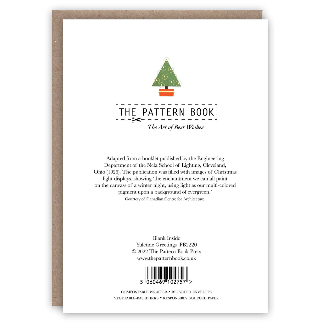 Adapted from a booklet published by the Engineering Department of the Nela School of Lighting, Cleveland, Ohio (1926). The publication was filled with images of Christmas light displays, showing 'the enchantment we can all paint on the canvass of a winter night, using light as our multi-colored pigment upon a background of evergreen.'